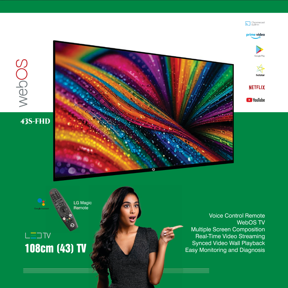 Enjoy an exceptional viewing experience with the LIVE GOOD 43S-FHD Smart LED TV. Featuring a sleek design and a vibrant 43-inch Full HD (108 cm) display, this TV delivers stunning picture clarity and lifelike colors. Powered by WebOS & ThinQ AI, itβs designed for seamless entertainment at your fingertips.